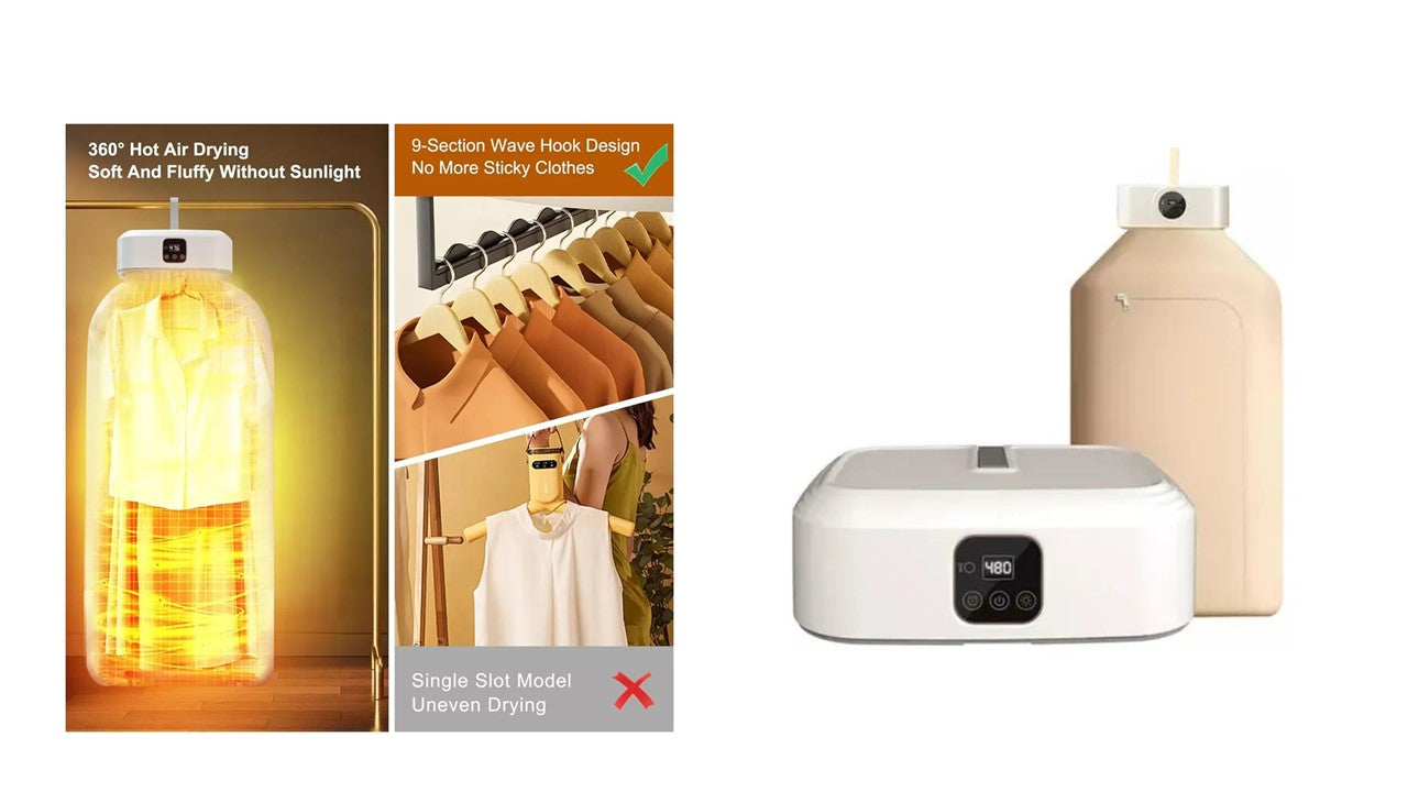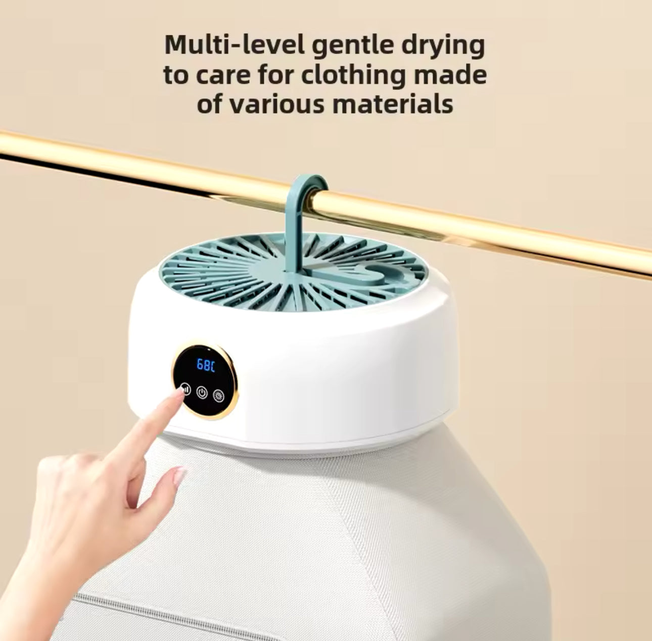 Esta secadora de ropa portátil y compacta de 600 W y 110 V ofrece un secado rápido y eficiente con dos modos de temperatura: 104 °F para prendas delicadas y 122 °F para algodón, lino, nailon y poliéster. Puede secar hasta 8 prendas finas simultáneamente. Cuenta con temporizador ajustable (1, 2 u 8 horas) para mayor comodidad. Su tamaño reducido (8.7 x 3.9 x 11.4 pulgadas) la hace ideal para espacios pequeños como apartamentos, dormitorios o casas rodantes, facilitando su almacenamiento. Funciona silenciosamente y consume menos energía que las secadoras tradicionales, garantizando un secado eficaz sin aumentar el consumo eléctrico.